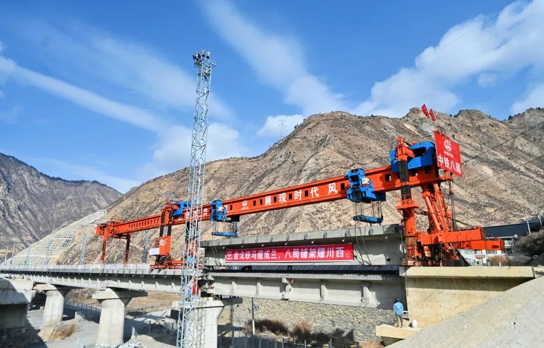 此次开通的是川青铁路青白江东至镇江关段,该区段全长206公里,设计时速200公里,包含桥梁33座,15公里以上长隧道5座,桥隧比例高达77%,线路最大坡度20‰,需架设T梁2025孔。中铁八局川青铁路站前一标项目部承担了区段内全部T梁制运架任务。